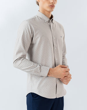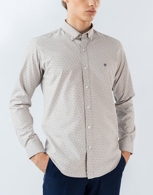 Mens Long Sleeve Light Brown Printed Casual Wear Shirt