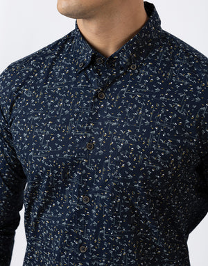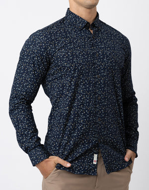 Home Ebony Casual Printed Mens Long Sleeve Slim Fit Shirt