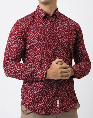Ebony Casual Long Sleeve Printed Slim Fit Mens Shirt