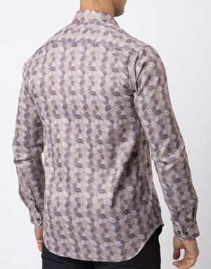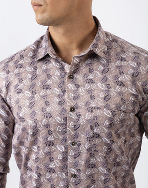 Ebony Casual Slim Fit Leaf Printed Long Sleeve Mens Shirt