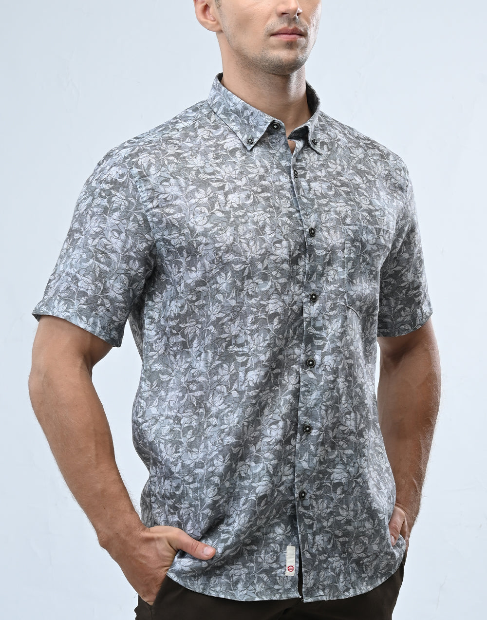 Ebony Casual Short Sleeve Slim Fit Mens Shirt