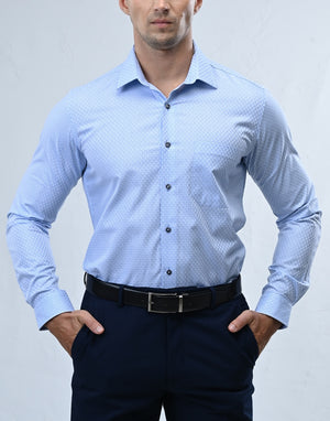 Vantage Blue Premium Giza Cotton Slim Fit Long Sleeve Mens Shirt