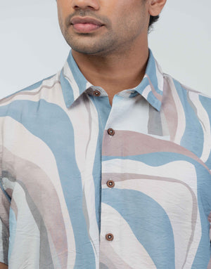 Vantage Casual Coastal Drift Regular Fit Short Sleeve Printed Mens Shirt