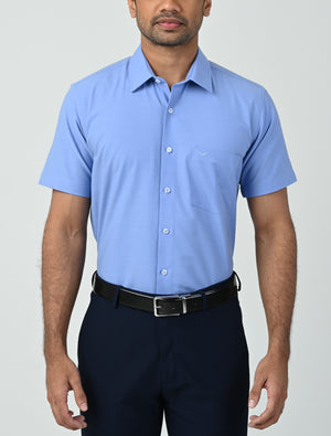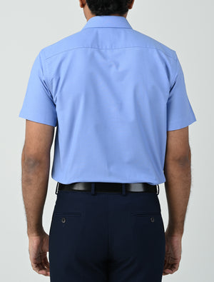 Vantage Blue Regular Fit Short Sleeve Oxford Men's Fashion Shirt